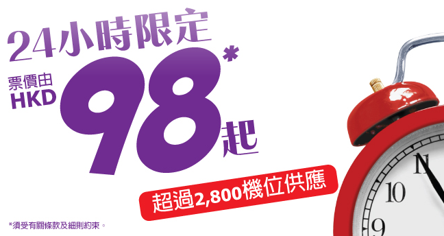 Go to http://goo.gl/i3OzpR at midnight and book fares from Hong Kong to Taichung, Fukuoka, Seoul and more destinations that cost as low as $98* HKD! Share this great deal with everyone and go grab a super low fare together! You better act now cause this offer is available for 24 hours only!