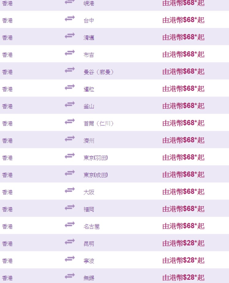 特別是新航點曼谷(廊曼),機票票價只由港幣68元*起!