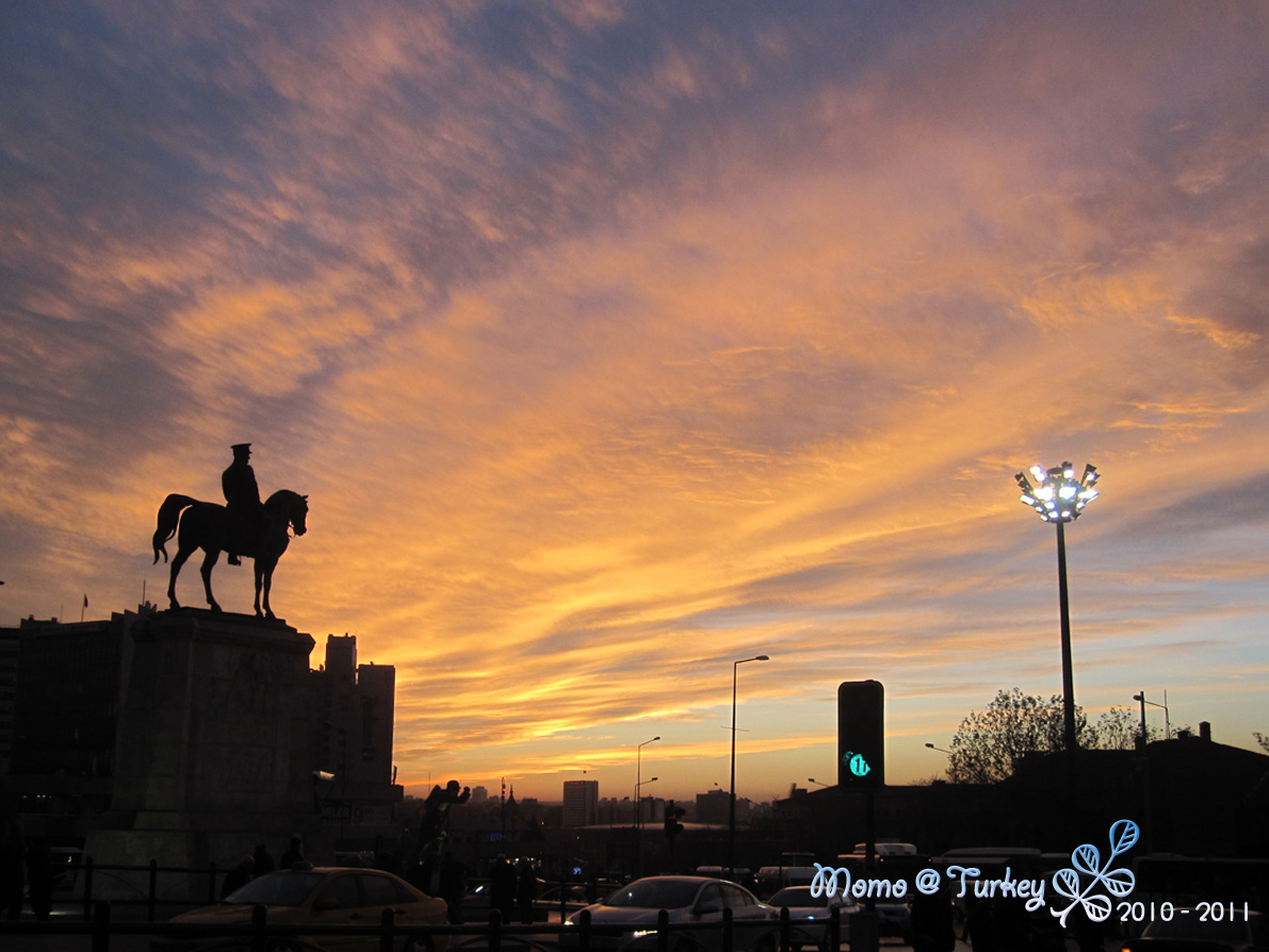 而巴士站更有地鐵連接到市區,非常方便,慕慕因為不打算住在安卡拉,晚上便走了,於是在巴士站寄存了行李,便立即趕上地鐵到市中心的 Ulus 站,打算好好利用這半天看看安卡拉,大街上最矚目的是土耳其國父 Atatürk 阿塔圖爾克騎在馬上的雕像 . . .