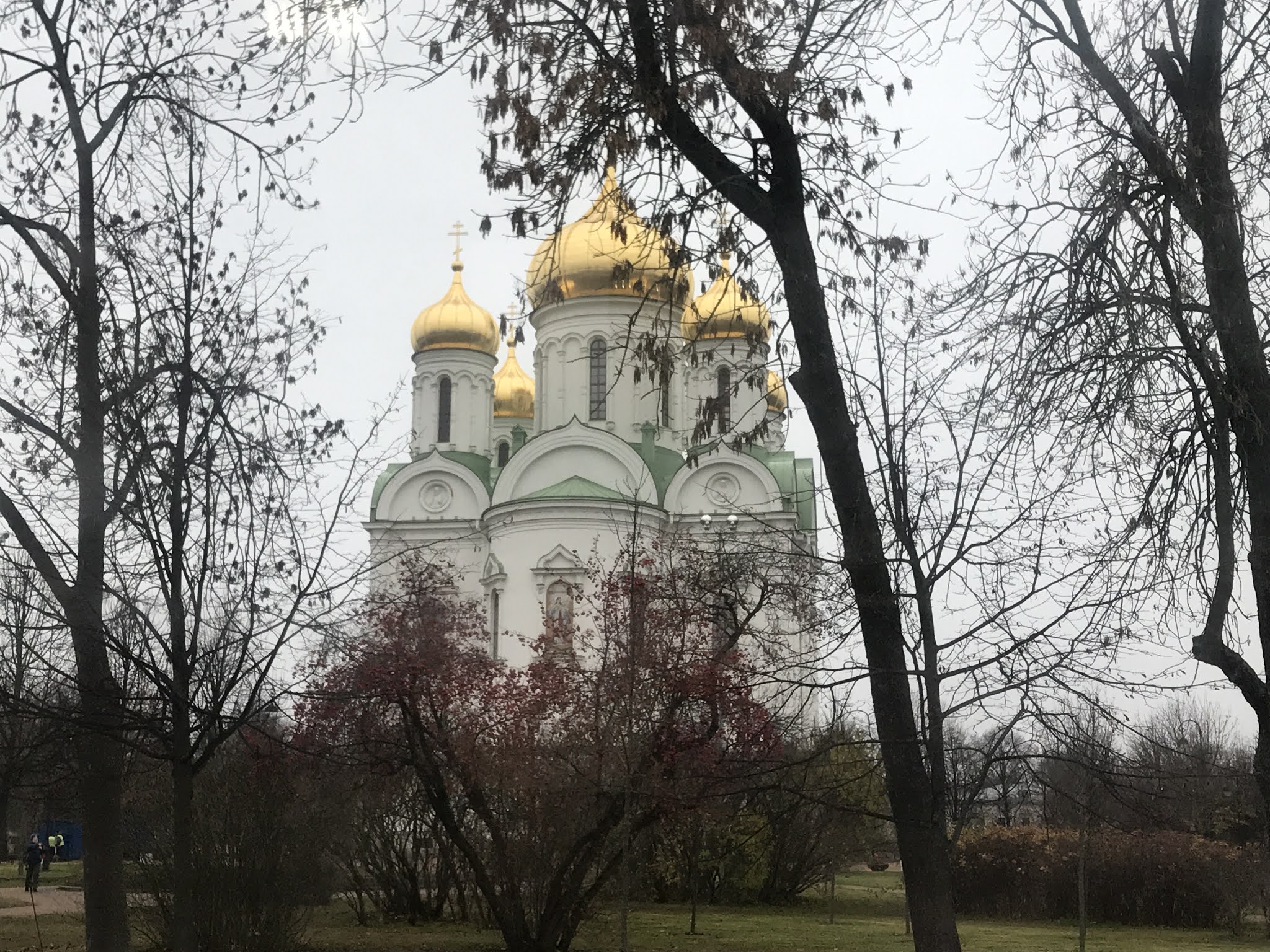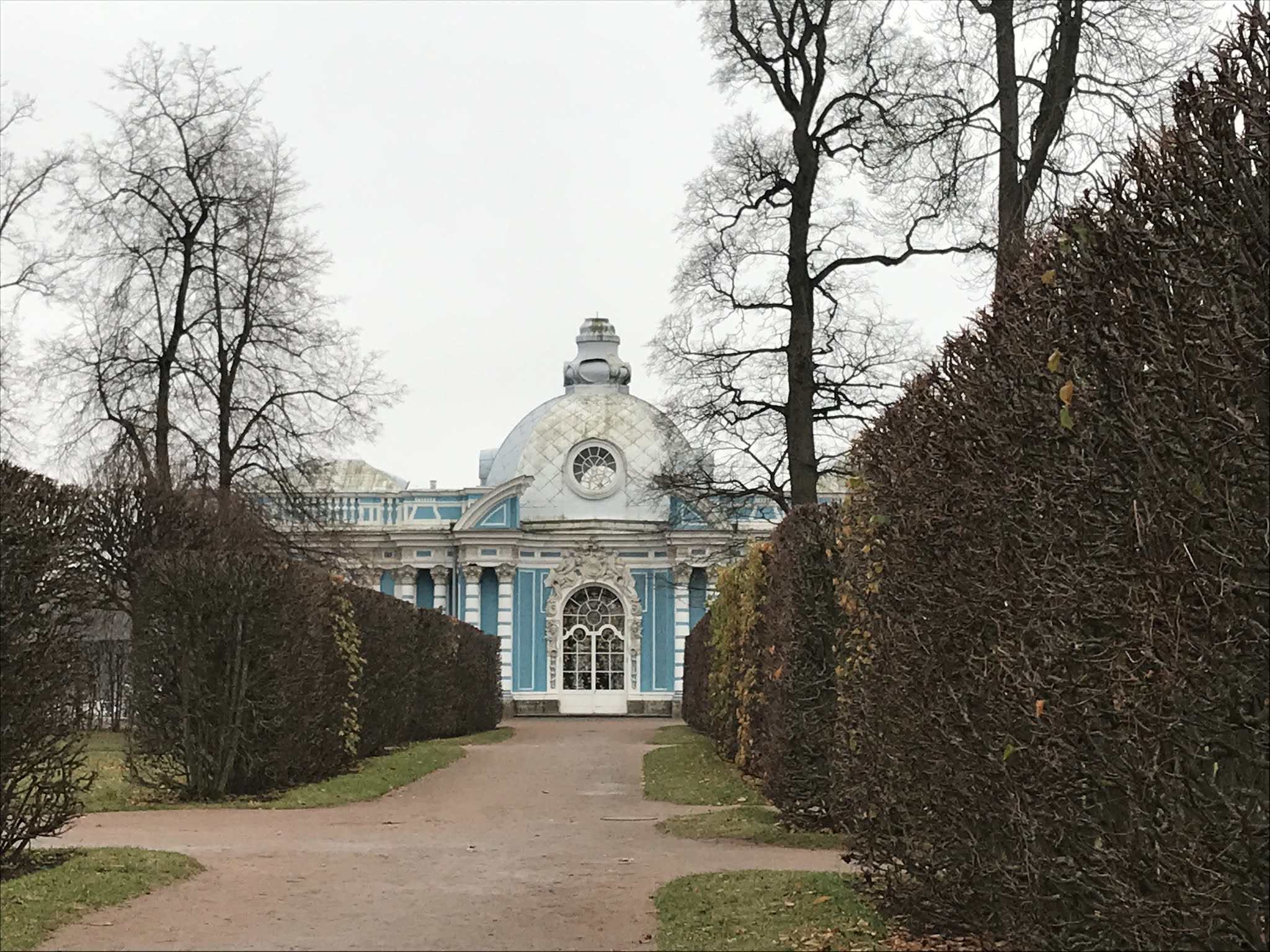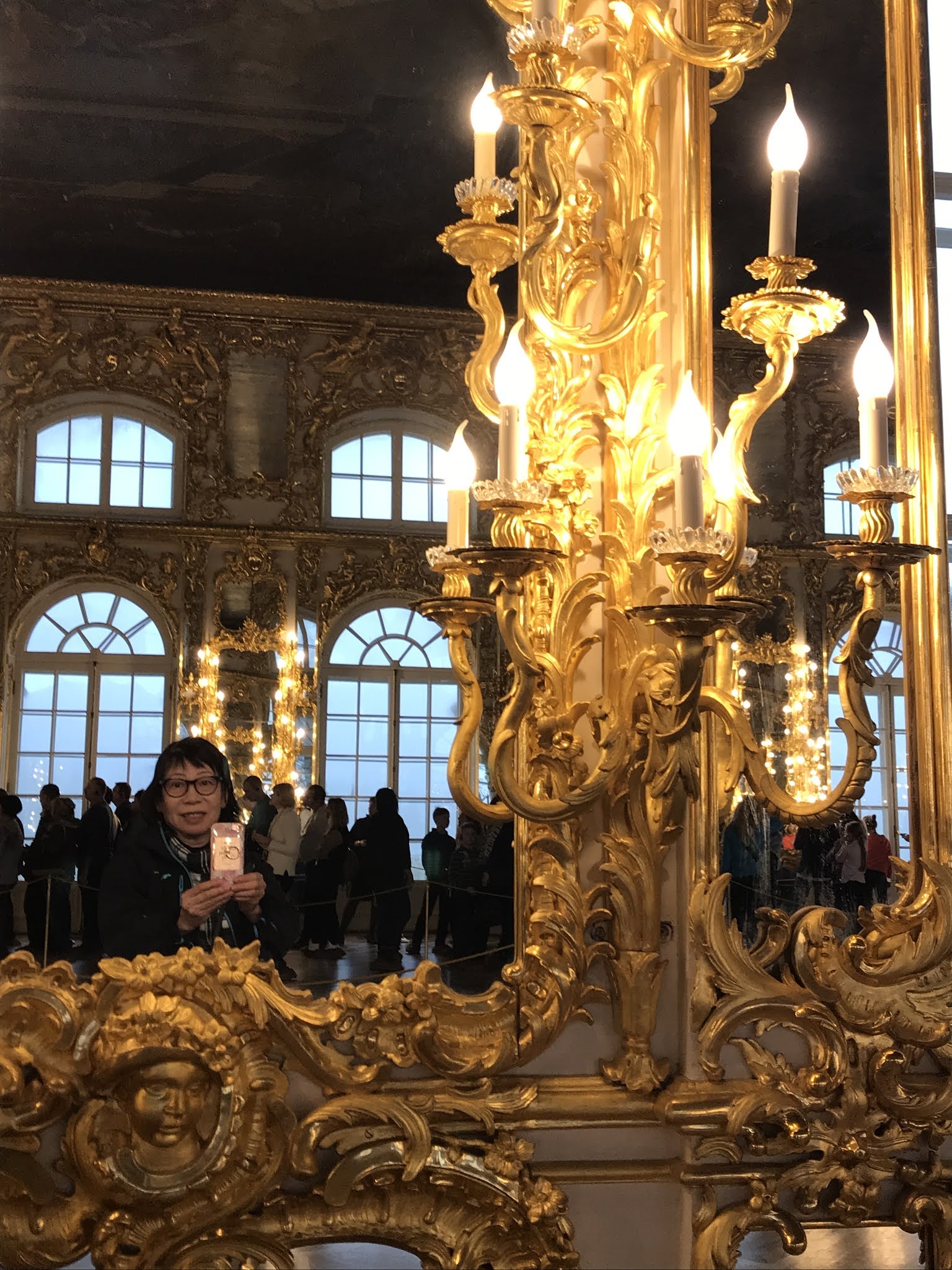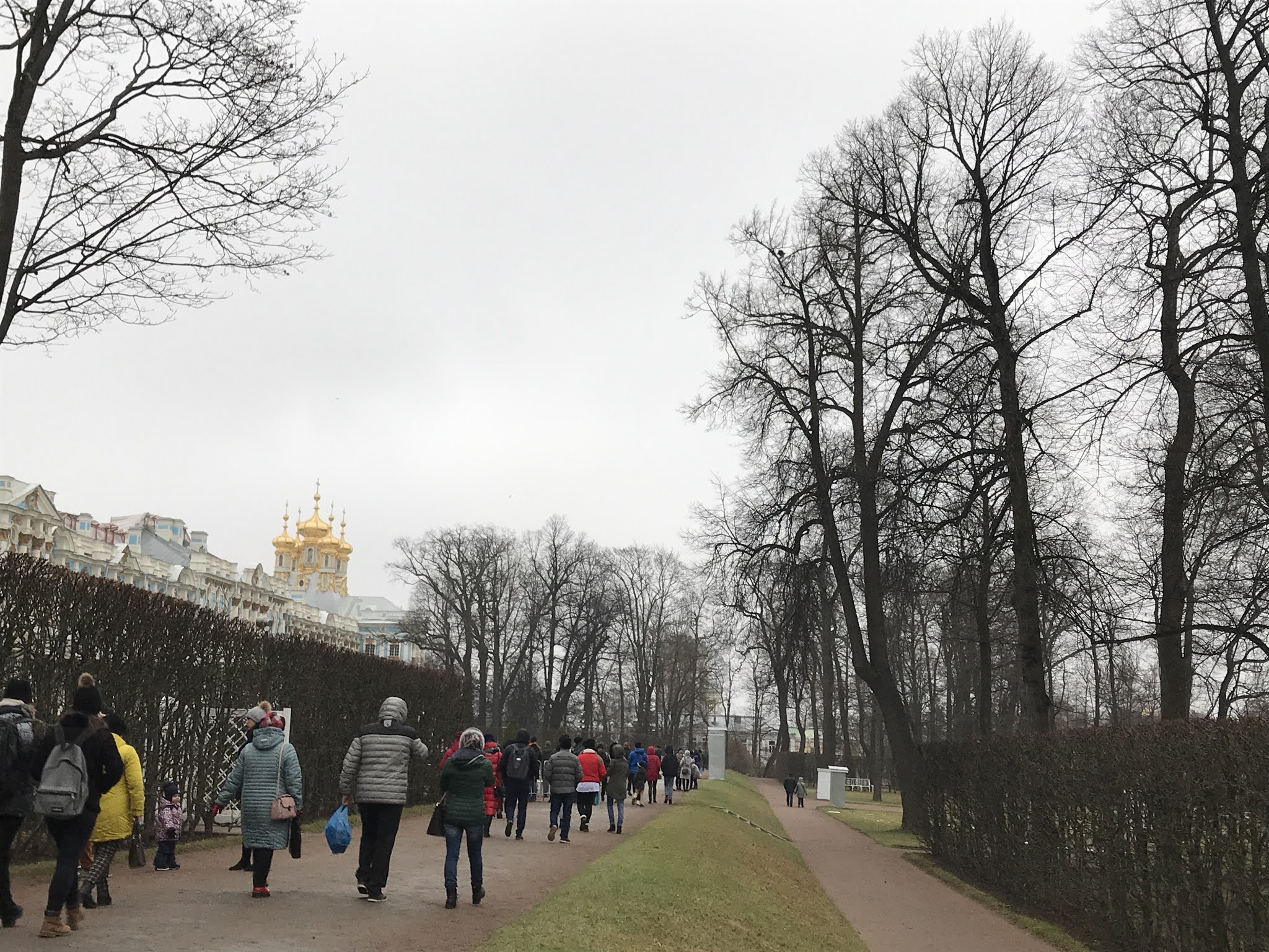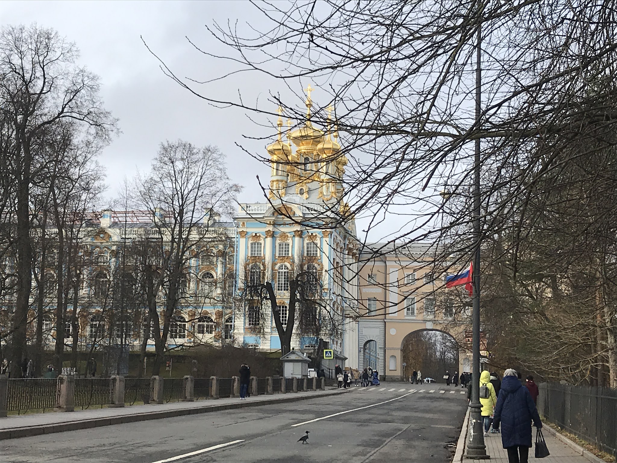 今天要去Catharine Palace 葉卡捷琳娜夏宮,路途比較遠,先坐地鐵到 Moskovskaya 再轉小巴,花了個半小時才到達沙皇村Tsarskoye Selo,下了車,便看到葉卡捷琳娜夏宮了,天氣冷得要命. . .