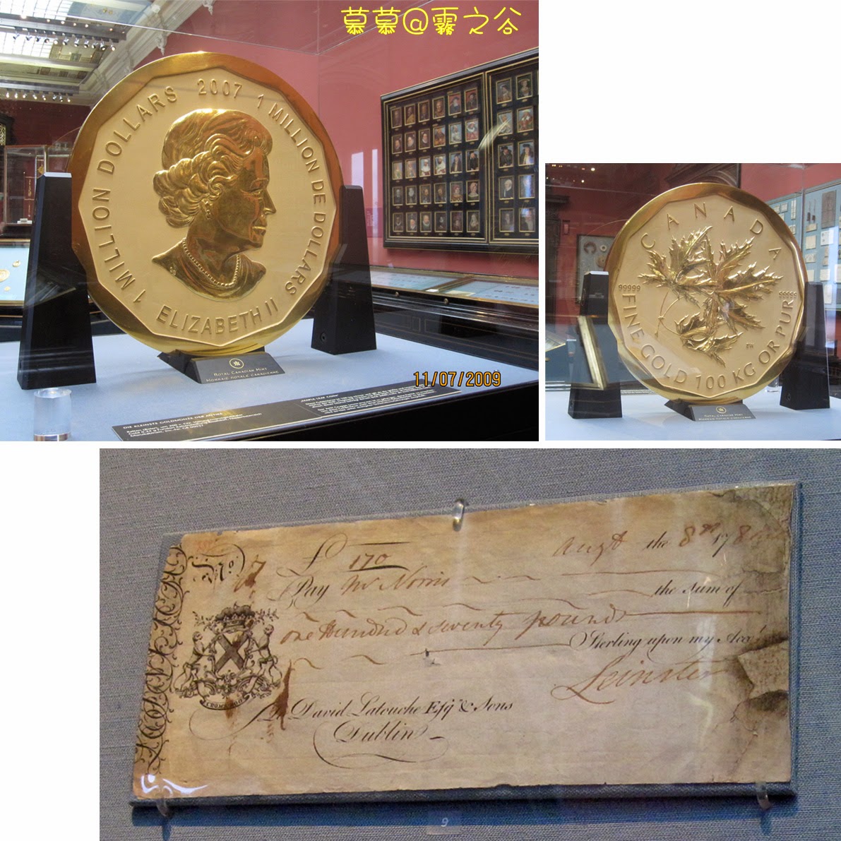 還有錢幣館,很多的設計都非常精緻,而這個價值一百萬的楓葉金幣就最矚目,下面是古代的支票。