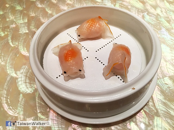 第一次來吃這金魚餃,已經覺得造型非常巧手,賞心悅目。這次再來,餡料以藍天使蝦取代河蝦,藍天使蝦通常一般都是拿來做刺身的,但這裏不惜工本把刺身蝦做成蝦餃的餡料,鮮美彈牙。我亦喜歡他們的蒸籠,用上這種取代一般的竹做蒸籠,更衛生,賣相也更漂亮。