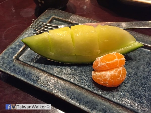 我一直都覺得香港日本餐廳的甜點都是一般般的, 但這裡抹茶雪糕芭菲卻做得很認真, 綠茶雪糕絕對不是普通的本地來貨, 配上綠茶寒天, 白玉, 甜點也做得認真. 水果也是挑優質的, 像這蜜瓜, 多汁又夠甜, 是很完美的結尾