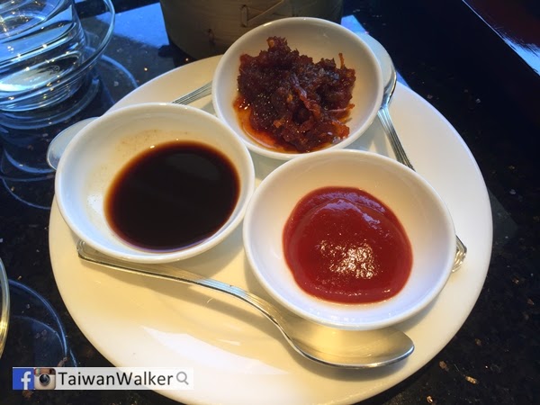 吃點心的時候會有辣椒醬, 醬油跟xo醬