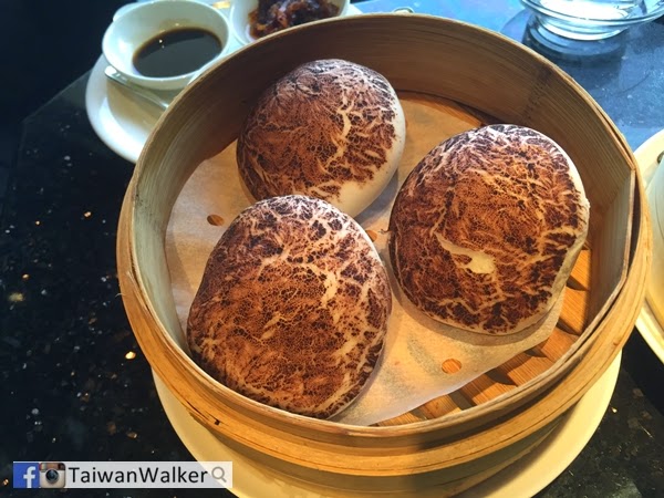 之後也試了兩款新的點心, 都是拿著文華廳的餐牌去點的. 這個是珍菌蘑菇包, ($88 三個). 做成一個個香菇的樣子, 很可愛~! 裡面就是用上好幾種的菇菌去做餡料的, 當中也加了黑松露, 特別香, 但也不會搶掉其他菇餡本身的味道.包的皮也做得很柔軟綿密, 吃素的朋友跟吃葷的我都會喜歡這個