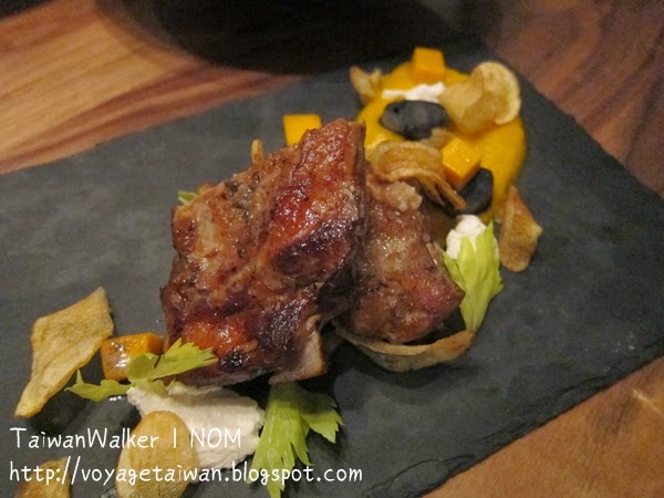 Chargrilled octopus | Potato cream | Grilled artichokes | Olive powder | Chorizo本身我沒有很喜歡西吃八爪魚, 覺得外國人弄的都不好吃. 但這個我卻覺得不錯喔, 八爪魚相信是很大一隻, 我們只吃牠的腳, 很大一條, 肉質一點都不韌,蠻嫩的但又不實彈牙. 薯泥做的鮮奶油配八爪魚會比光吃的美味. 雅枝竹是選用新鮮的, 沒有先醃過的那些酸, 整體我覺得也蠻好吃的