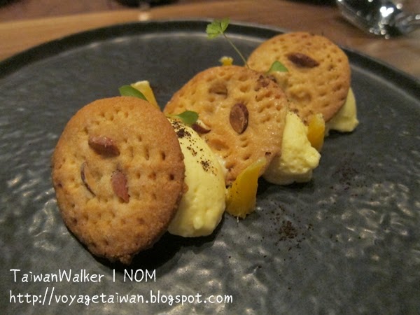 Almond cookie | Mascarpone | Blood oranges兩款甜點我都很喜歡, 這個是杏仁餅乾, 是他們自己手工去烤的, 看到那些用叉子戳的小洞洞覺得很漂亮很有homemade的感覺. 餅乾很酥脆, mascarpone非常滑溜, 很好吃呢!