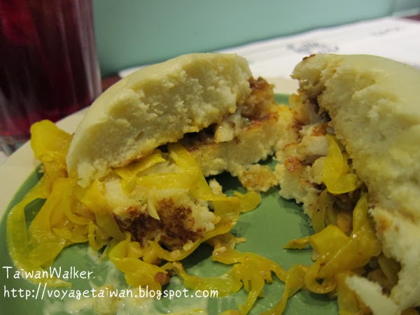 配上海鮮醬跟茄汁, 還有芝麻醬, 味道加起來有點像台灣刈包. 只是肉的質感不太好, 不然這個也做得很不錯的