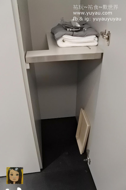 儲物櫃超大型的,下方可以放行李箱及鞋子,上方就可以放外套化妝袋等。