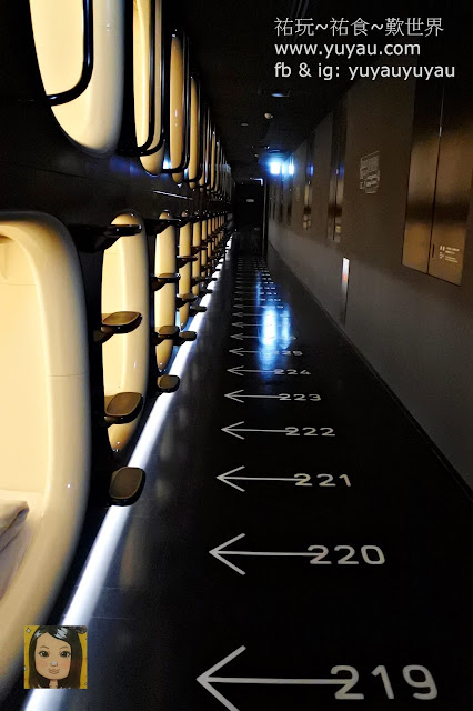 右邊都是Capsule床位,中間是儲物櫃,左邊就是洗手間及淋浴室。