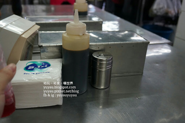 匙叉就放在鐵盒內,桌子上另放著紙巾及黑油。