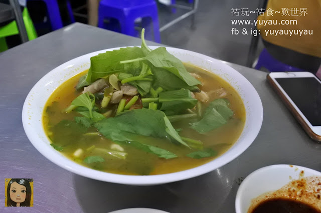 喝一口,酸度重帶點辣,上網查一下這是酸辣豬肋骨湯,大家下次到泰國可以試一下。