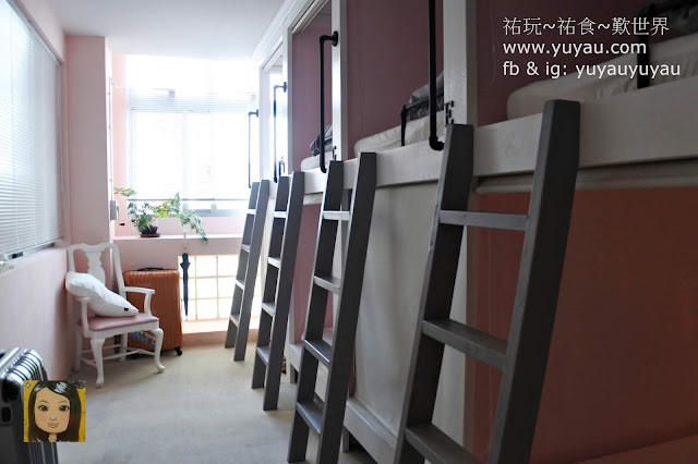 我入住的是女生專用房,共有10個床位,分為上下鋪。房間以粉紅色為主調,很有少女風。