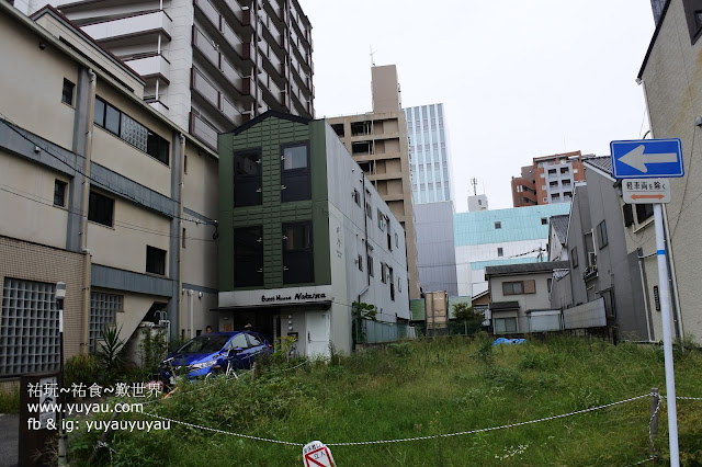 中今旅館 Guesthouse Nakaima就在一草地旁,非常易認,只要找到草地旁的綠色三層高建築物就是了。
