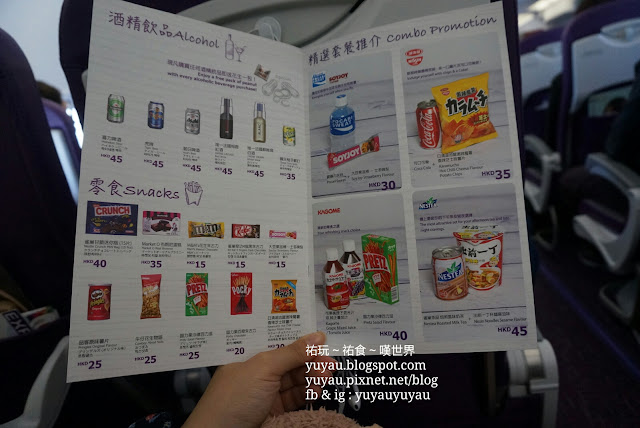 飛機餐由HK$65起,杯麵由HK$30起,飲品除了HK$20的支裝水外,其他要HK$25,還有小吃。
