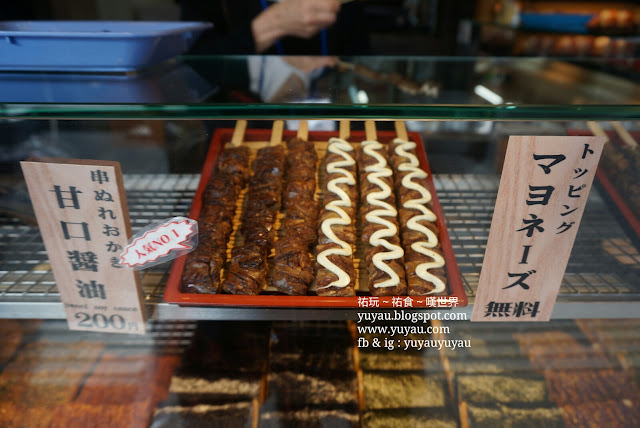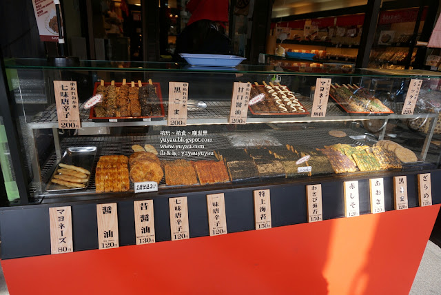 店員說人氣第一的不是仙貝呢,而是這個外表看來像牛肉串燒的おかき,中文大概可譯做米餅。